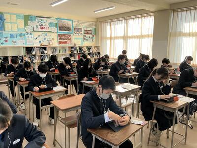 本日、1、2学年では標準学力検査が実施されました。CBTといわれるタブレットを使用したテストです。音声による出題などもあり、これまでと異なる方式でしたが、生徒は頑張って取り組みました。