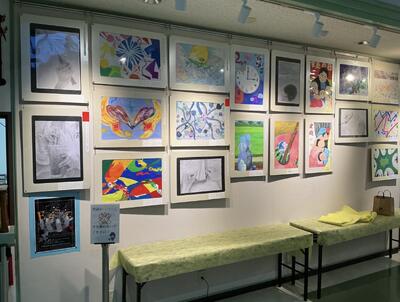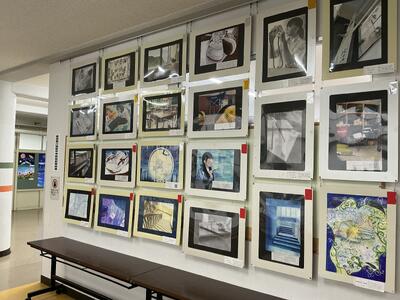 黒川地区の巡回美術作品展が始まりました。同世代のすてきな作品が展示されており、じっくり観賞している生徒も多いです。