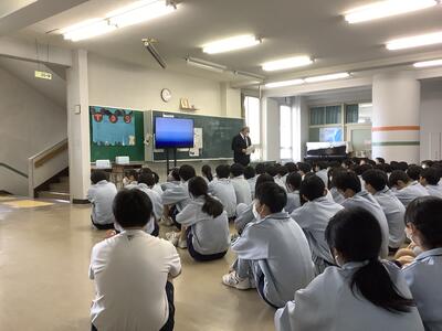 先週から二者面談が始まり、3年生は進路選択の大切な時期を迎えています。今日は学年で受験の際の面接について、動画教材を見ながら確認をしました。しっかりとポイントを知ることができました。真剣さを感じる時間となりました。