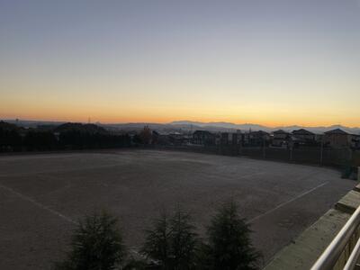 そして、夕方…校舎からは山の端がきれいにオレンジ色に染まるすてきな景色が見えました。癒されました。