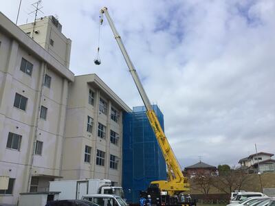 屋上の防水シート張り替えと西側非常階段の補強工事が