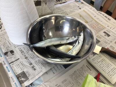仙台水産さんから2年生の生徒一人一人にさんま一尾ずつ提供していただきました。