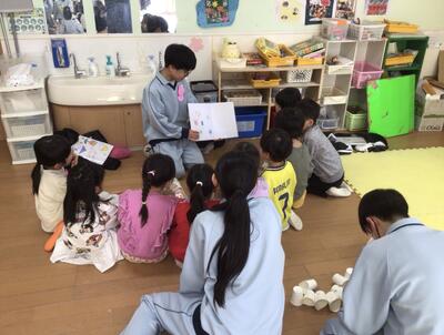 幼稚園では、早速グループごとに分かれて子ども達に絵本を読み聞かせていました。