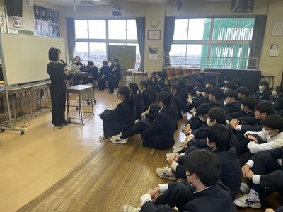 2年生は、後期の振り返りをしました。集中して成長の軌跡を書く姿に、充実した学校生活が送れていると感じました。