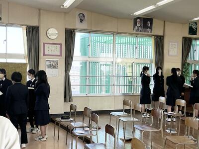 全校集会後は、全学年で実力考察が行われました。冬休み中に家庭で学習した成果を発揮するべく、どのクラスでも、一生懸命に問題に取り組む姿が見られました。教室には新年の目標が掲示されており、学習面でもよきスタートができていたようでした。とくに3年生は来週から本格的に入試が始まります。それぞれの進路に向けて一層頑張っています。