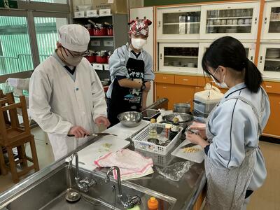 家庭科室から、何やたら楽しげな声が聞こえて来ました。3年生の家庭の授業では、調理実習が行われていました。今日のテーマは、なんと肉まんでした。包丁使いもさすがで慣れたものでした、今日は担任の先生も一緒の授業で楽しく、美味しく、頑張っていました。