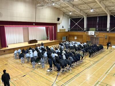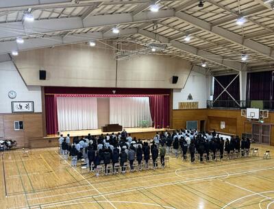 今日から卒業式に向けての練習が始まりました。主任からのお話に続き、早速礼法の確認が行われていました。卒業まであと2週間、1日1日を大切に過ごしてほしいと思います。