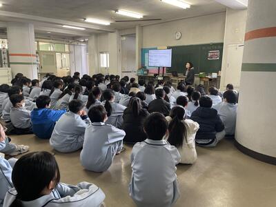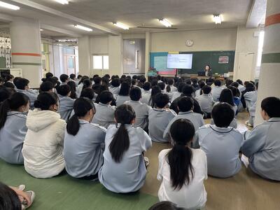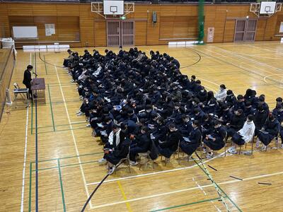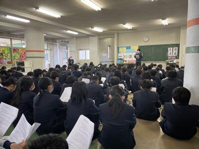 1学年では、後期前半を振り返る集会が行われました。合唱コンクールに始まり、県内自主研修、学年PTA行事、ブックトークと行事もたくさんありました。大きく成長した3ヶ月となりました。