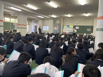 明日は1学年で県内自主研修が行われます。今日は結団式です。仙台市内を中心に事業所や施設を回ります。来年の福島複合研修、再来年の修学旅行自主研修にしっかりと繋げてほしいと思います。