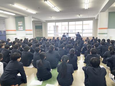 各学年で学年集会が行われました。新3学年では、新しい先生方を迎え、最上級生としての1年をみんなで最高のものにしたいと気持ちを高めていました。