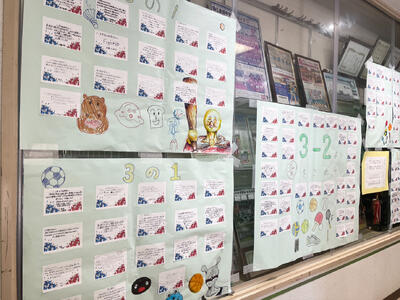 新人大会まで1週間となりました。昇降口には3年生からの応援メッセージが貼り出されれています。大会に臨む選手の士気が高まっています。