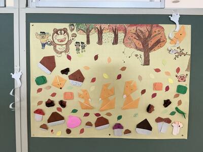 先日までの猛暑が嘘のようにおさまり、秋を感じるようになりました。校内の掲示物もハロウィンや紅葉など秋バージョンとなってます。いちょう学級前にも素敵な掲示物が飾られています。