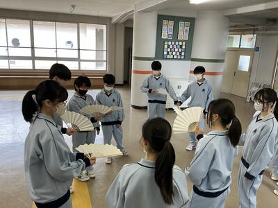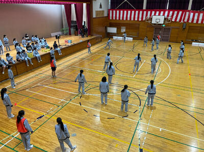 本日は手踊り練習の2日目です。カラー団ごとに教室に分かれての練習、モニターで動画を見ながら丁寧に確認しました。