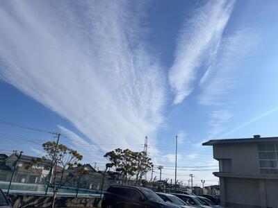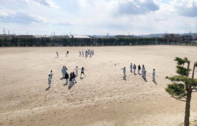 今朝は晴れ渡る青空となりました。日中の気温も4月下旬並みで、昼の校庭開放にもたくさんの生徒が出てきてドッチボールやサッカーなどを楽しんでいました。