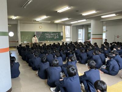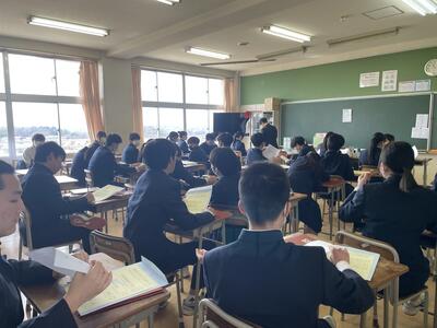各学年で学年集会が行われました。各クラス代表からの反省の発表の後、学年の先生一人一人からお話がありました。1年間の成長を確かめることが出来ました。