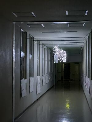 実は、体育館通路の新たな作品の準備中とのことでした。