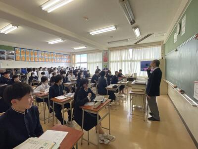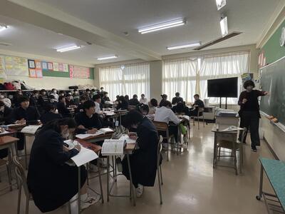 今日は新入生交流学級が行われました。授業を参観に来た小学生の前では、いつも以上に張り切る姿が見られました。