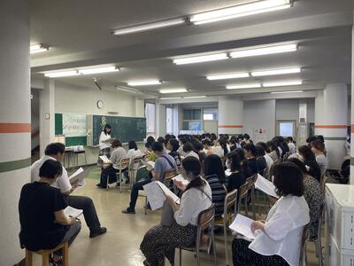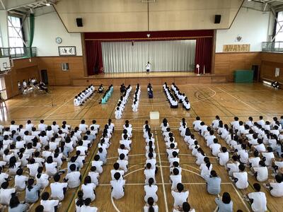 最初に先日行われた地区駅伝大会の報告がありました。男女ペアでの優勝の報告に大きな拍手が起こりました。2年連続東北大会出場を目指して頑張ってほしいと思います。