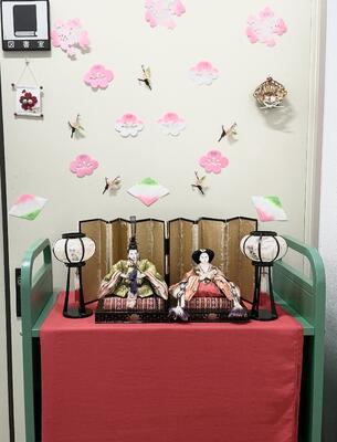 春を感じる陽気に季節を感じます。図書室前には、今年もすてきなお雛様が飾られました。春はもうすぐです。