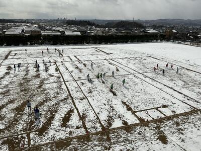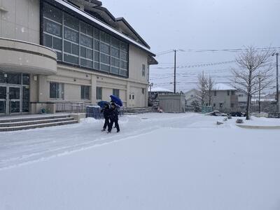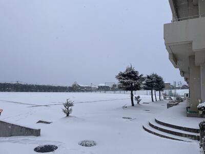校庭が一気に真っ白になりました。2月に入り厳しい寒さが続いています。
