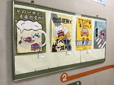 廊下や階段にはすてきな絵画作品が展示されていますが、新しく交通安全コンクールの入選作品などが加わりました。いつもすてきな作品に癒されます。