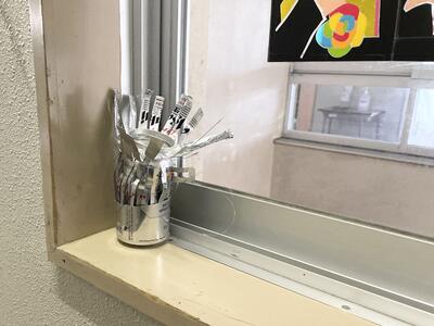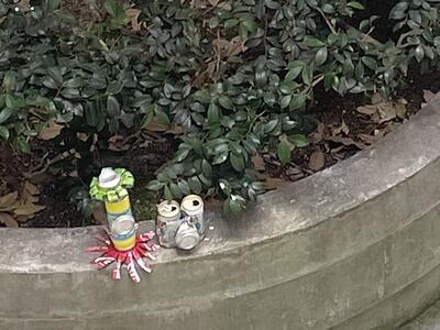 新しいアート作品は空き缶を利用したもので、展示の仕方も日常生活の中に溶け込む形で行われています。芸術の奥の深さを感じながらも楽しませていただいています。