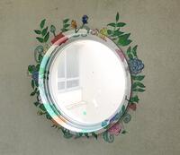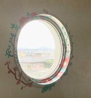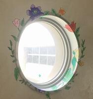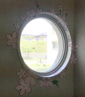 階段にある丸窓で制作をしていた美術部の皆さんのアートが完成しました。通るたびにすてきな小窓に癒されています。
