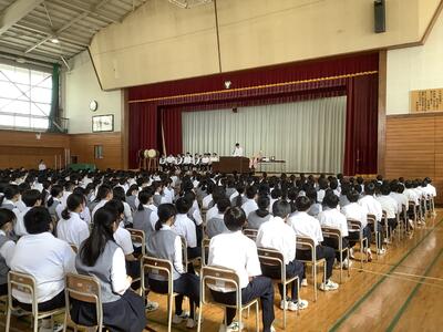 地区中総体報告会が行われました。各会場では熱戦が繰り広げ、全力で戦うことができました。各部の部長より報告がありました。