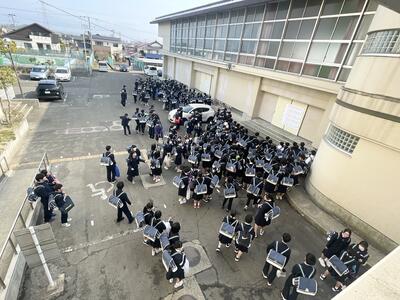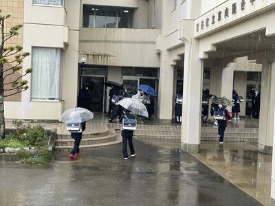 今年度最終日、あいにくの雨の朝でした。それでも部活動で登校した生徒は校舎内での練習に熱心に取り組んでいました。もうすぐ新入生が入学してくると思うと自然と一生懸命になってしまうようです。