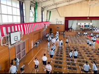 大きな拍手の中、新入生が入場しました。入学生点呼では「はい」とはっきりとした返事が会場に響きました。