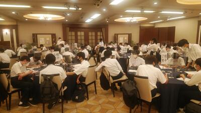 本日,7月6日~7月7日に実施される,2学年岩手宿泊体験学習の結団式が6校時に行われました。写真は結団式の様子と体験学習のスローガンです。