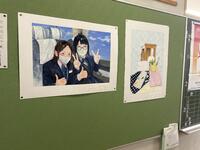 ホールに展示されているアート作品がたくさんあります。いつも通るたびに目をひかれてしまいます。生徒の創造力、表現力にはいつも驚いています。