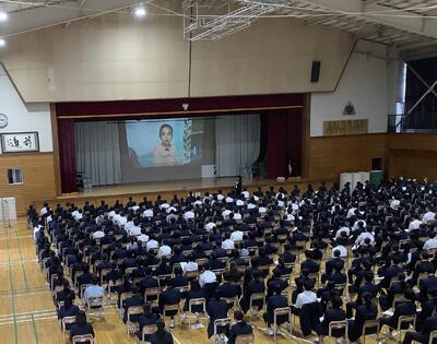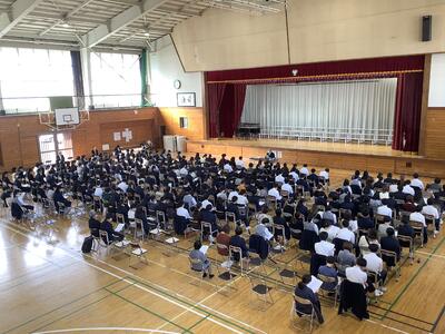 閉会式では会場生徒全員で校歌を合唱しました。迫力ある歌声に拍手喝采でした。