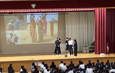 実際に世界の子ども達がおかれている状況を代表生徒が体験し、子どもの人権や権利を考えました。