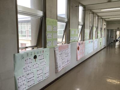 体育館通路には3年生からの応援メッセージが貼り出されていました。