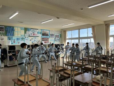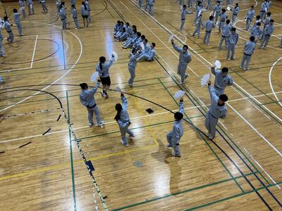 今年も、年度末の練習が始まりました。東向中の伝統の手踊りを毎年体育祭で披露していますが、この時期は、2年生がリーダーとなり、1年生とともに継承した手踊りを確かめます。そして新しく入学してくる新入生に教えていきます。