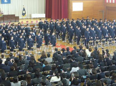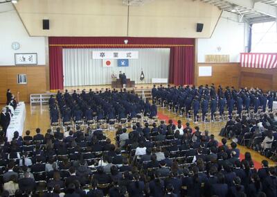 本日、第40回卒業式が挙行されました。校長より156名の卒業生に証書が手渡されました。在校生代表の送辞に続き、卒業生代表生徒が3年間の想いを込めて答辞をのべました。感謝に包まれた暖かい言葉に胸が熱くなりました。そして、卒業の歌は会場を感動させました。ご卒業おめでとうございます。