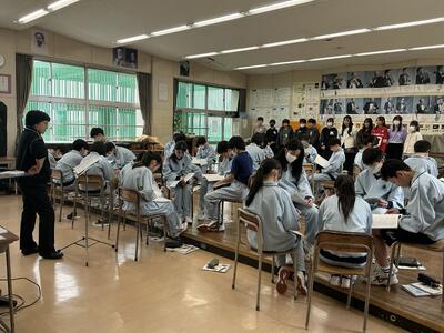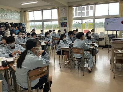 今日は、新入生が授業見学に来校しました。授業を見学する児童は、中学生が学び合う姿を見て関心を持ったようでした。見られる中学生は新入生が来てくれたことが嬉しいようで、いつも以上に張り切る姿が見られました。