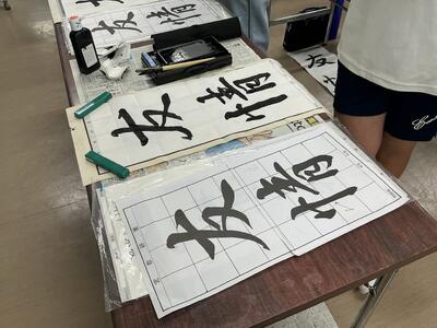 3年生の書き初めの課題は『友情』です。バランスをとりながら集中して書き上げた作品は、一人一人の個性が表れていました。なかなか趣深いです。