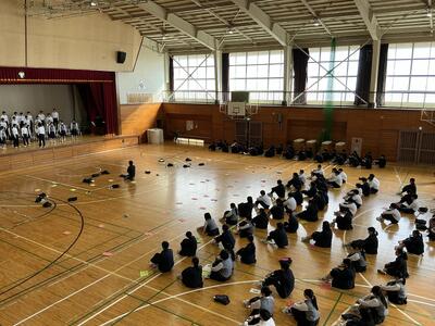 合唱コンクールを1週間後に控えて、学年ごとに中間発表会を行いました。各クラスともに完成はしてきているものの、あと一歩がなかなか難しく苦戦していることもあるようです。互いの演奏を聞くことで、さらに「頑張るぞ!」と気合いが入っていたようです。